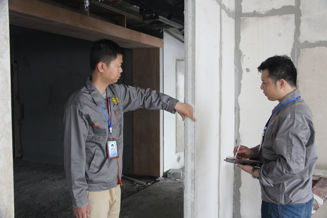 是一種新型節能墻材料,它是一種外型象空心樓板一樣的墻材,但是它兩邊有公母隼槽,安裝時只需將板材立起,公、母隼涂上少量嵌縫砂漿后對拼裝起來即可。下面我們來介紹一下輕質隔墻板的安裝構件要求。 輕質隔墻板的安裝構件要求 1、頂端與梁底用U型鐵件固定,將U型鐵件用射釘固定在梁底部,上端用木楔加固,用L型鐵件固定。 2、吊掛設計:吊掛間距不應小于300m,單點承重不應大于80公斤,需先開口埋件。 3、電氣設計:電氣線路可作暗線設計,利用隔墻板孔穿軟管敷設線路;也可作明線設計,敷于墻面,開口插座與其相應配置。 4、防潮防水:飾面設計應考慮防潮防水,沿墻邊設計水池、水箱、面盆等附件時,墻面應涂刷防水涂料或貼瓷磚等防水飾面設計。 5、墻面裝修:可刮大白、噴瓷、貼瓷磚等裝飾材料進行裝修。進行下道工序裝修時,先清理隔墻板墻面,灑水潤濕,按常規的施工工藝進行裝修。